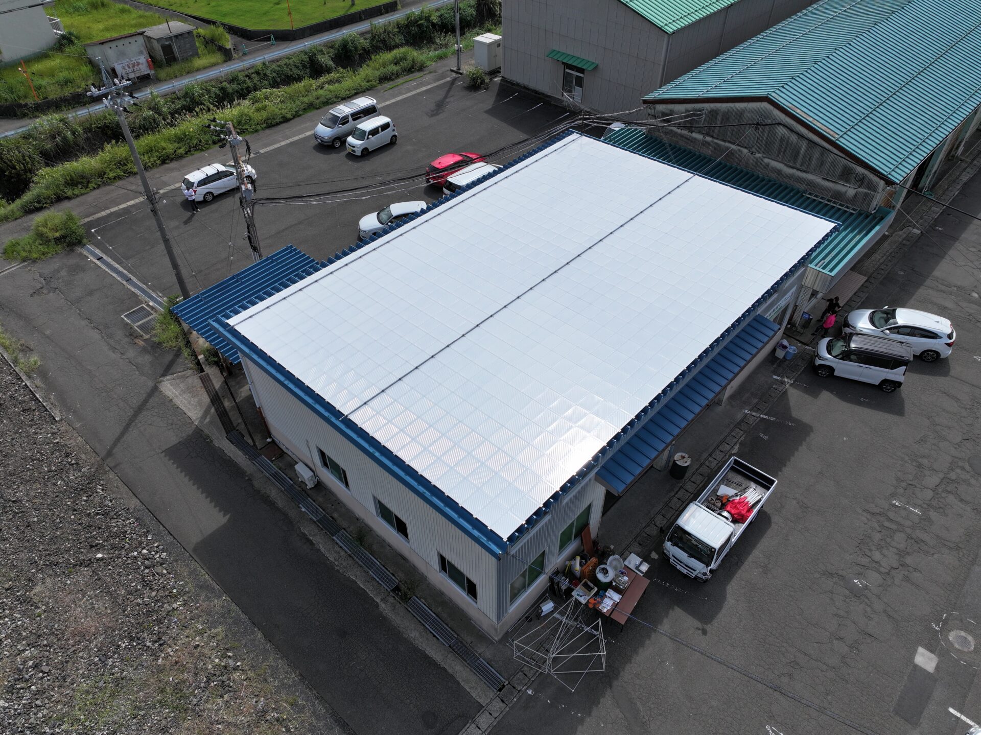 施工事例 HOME > 施工事例 > 某工業 フラットフェース 2025.10.07 某工業 フラットフェース 今回の某工場では暑さ対策としてフラットフェースを起用していただきました。 シポフェースも暑さ対策には最適ですが、工期がどうしてもかかってしまう為、 今回早期施工対応させていただく為に、フラットフェースでの施工になりました。 フラットフェースは雨天時でも施工可能になりますので、工期短縮する事が可能です。 施工前 施工後 フラットフェース施工 担当:本社工事営業部 山口本部長 フラットフェース 会社・工場・施設