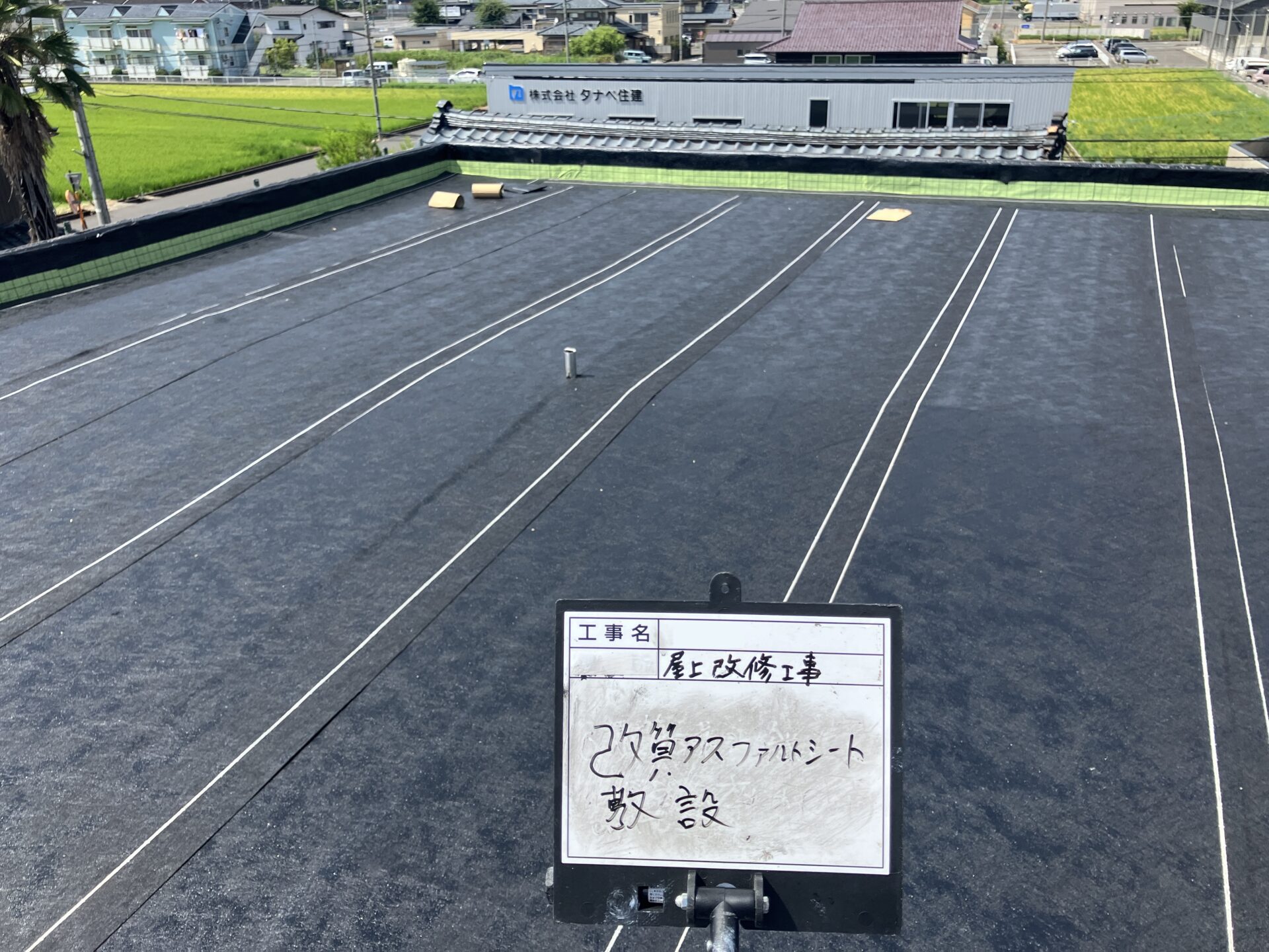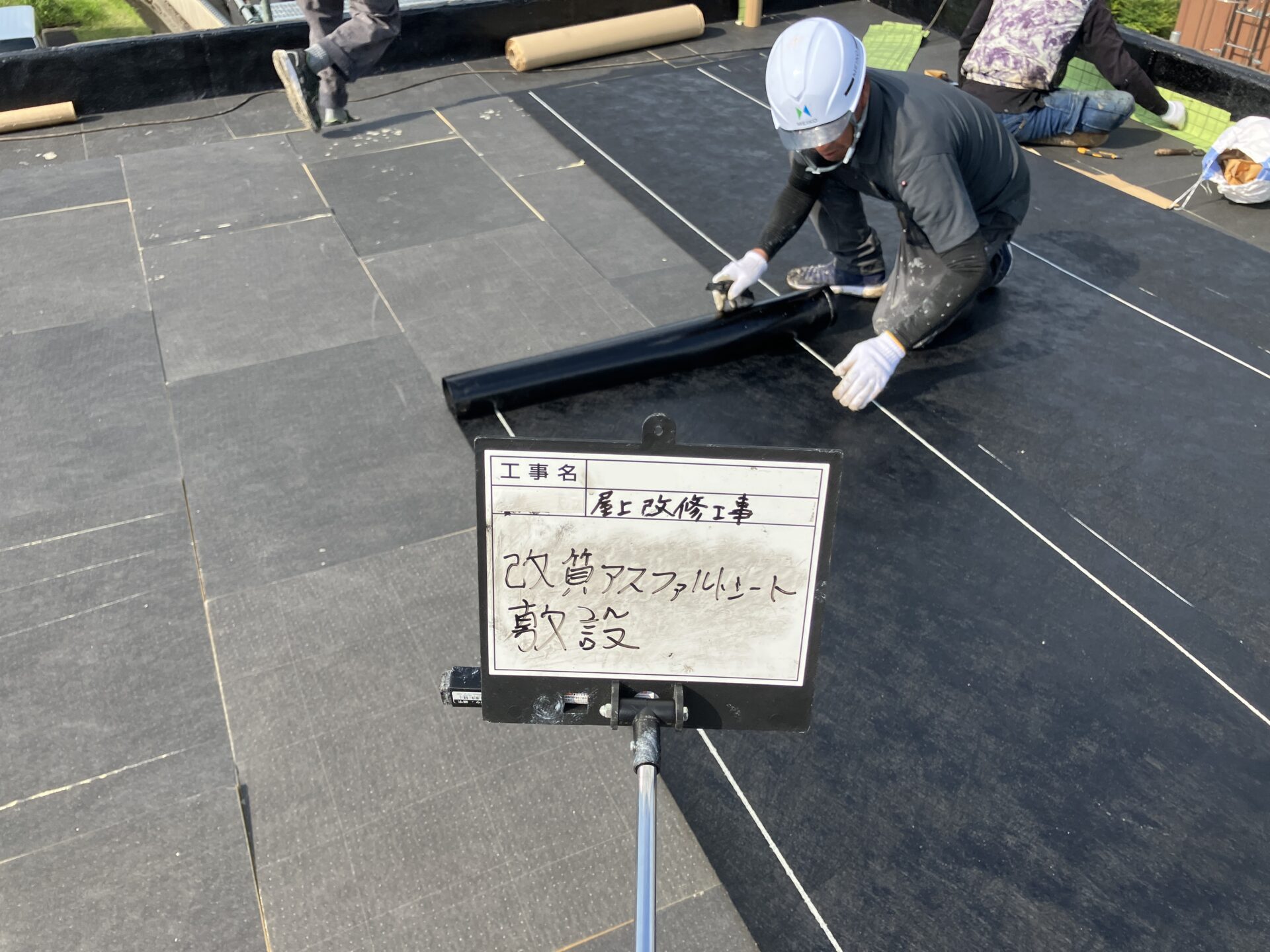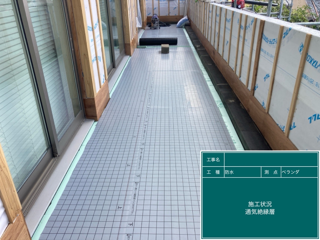 長年の結露で家全体の老朽化が進むことを止める為に、今回既存防水層の上に断熱材を敷設し、絶縁工法を行い、屋上はトーチ防水を、ベランダはウレタン防水を施工しました。